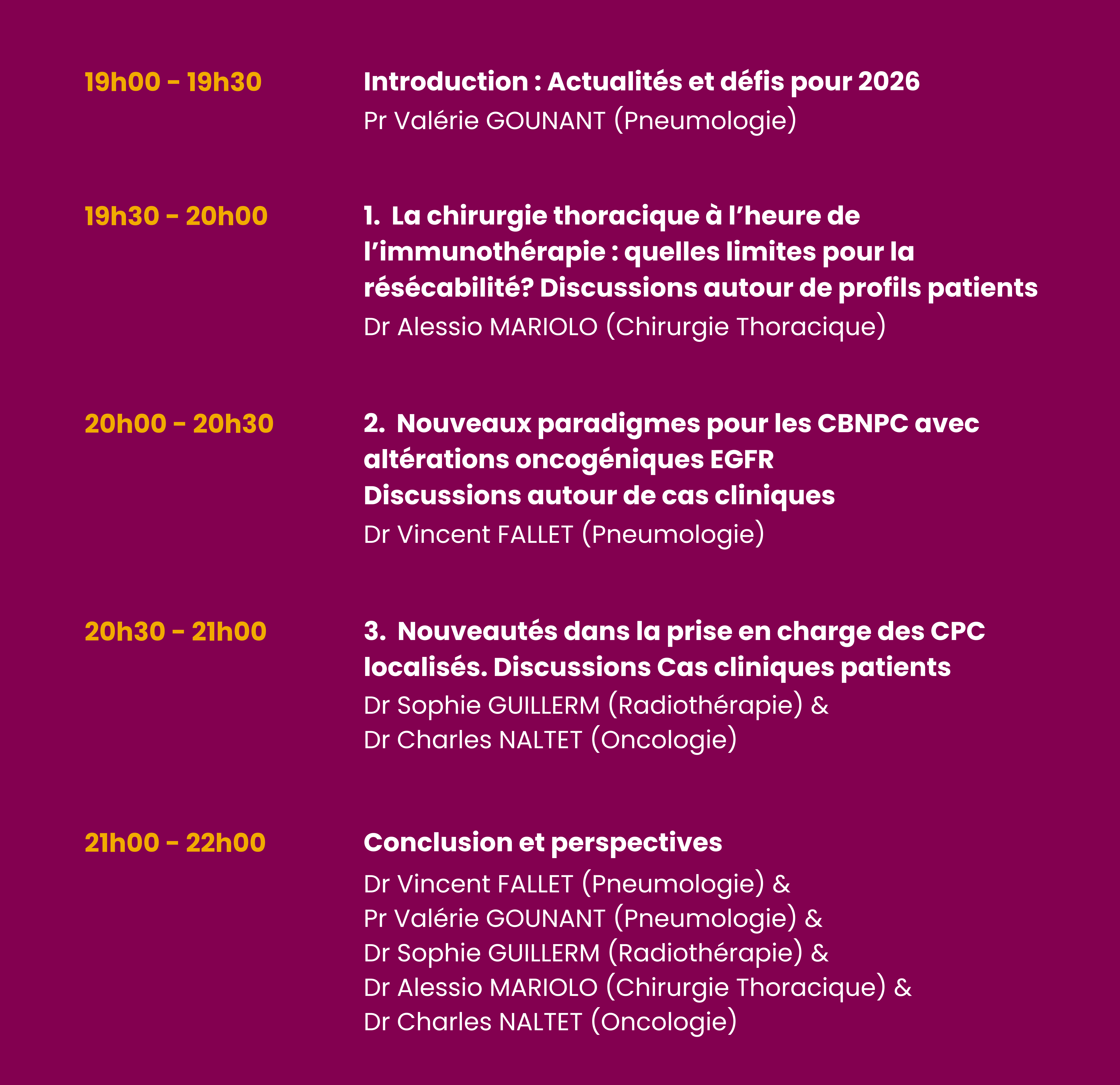 2026 : Nouveaux enjeux en oncologie thoracique : Échange de bonnes pratiques.